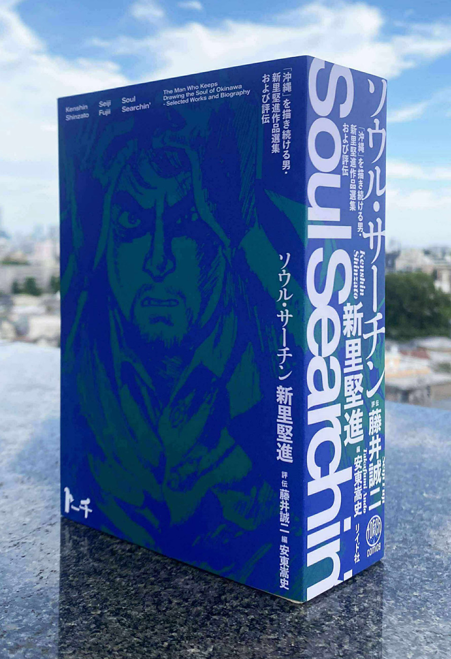 沖縄が、そして日本が戦後80年を迎えたこの夏、主に漫画作品を手がける東京の出版社から全912ページにおよぶ書籍が刊行された。タイトルは『ソウル・サーチン』。終戦翌年の沖縄に生まれて沖縄に育ち、80歳間近の今も現役の漫画家として、沖縄戦をはじめとした沖縄の歴史や文化を沖縄で描き続ける男、新里堅進の作品選集および評伝である。