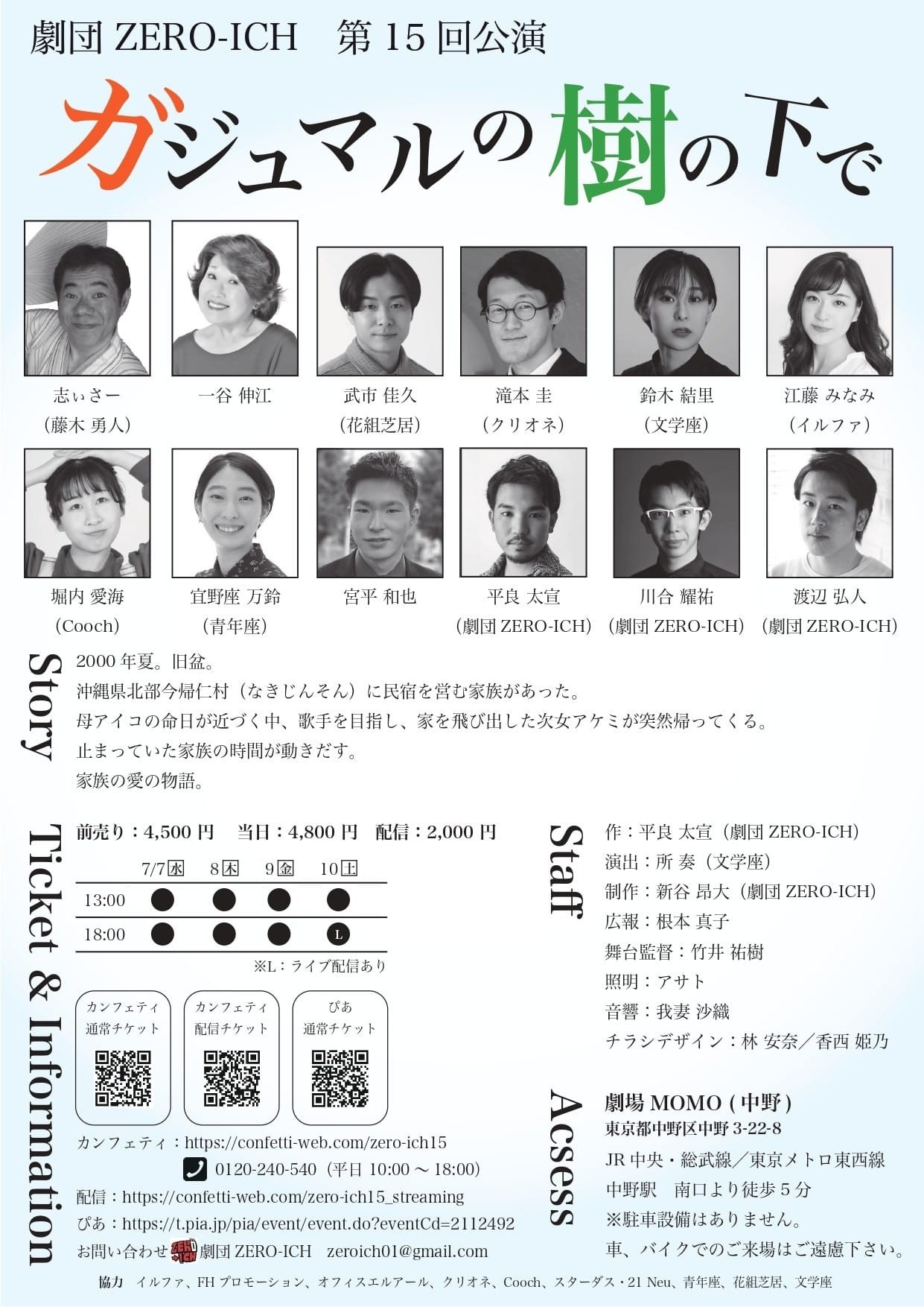 作者:Ryotanobu Taira(剧团零 ICH)/导演:合奏(文学剧场)/制作:Kotai Shintani(剧团零 ICH)/公共关系:Mako Nemoto/ 艺术与舞台导演:武之友/灯光:Asato/ 原声:Gazuma Saori/ 传单设计:安娜 Hayashi,Himeno Kosai