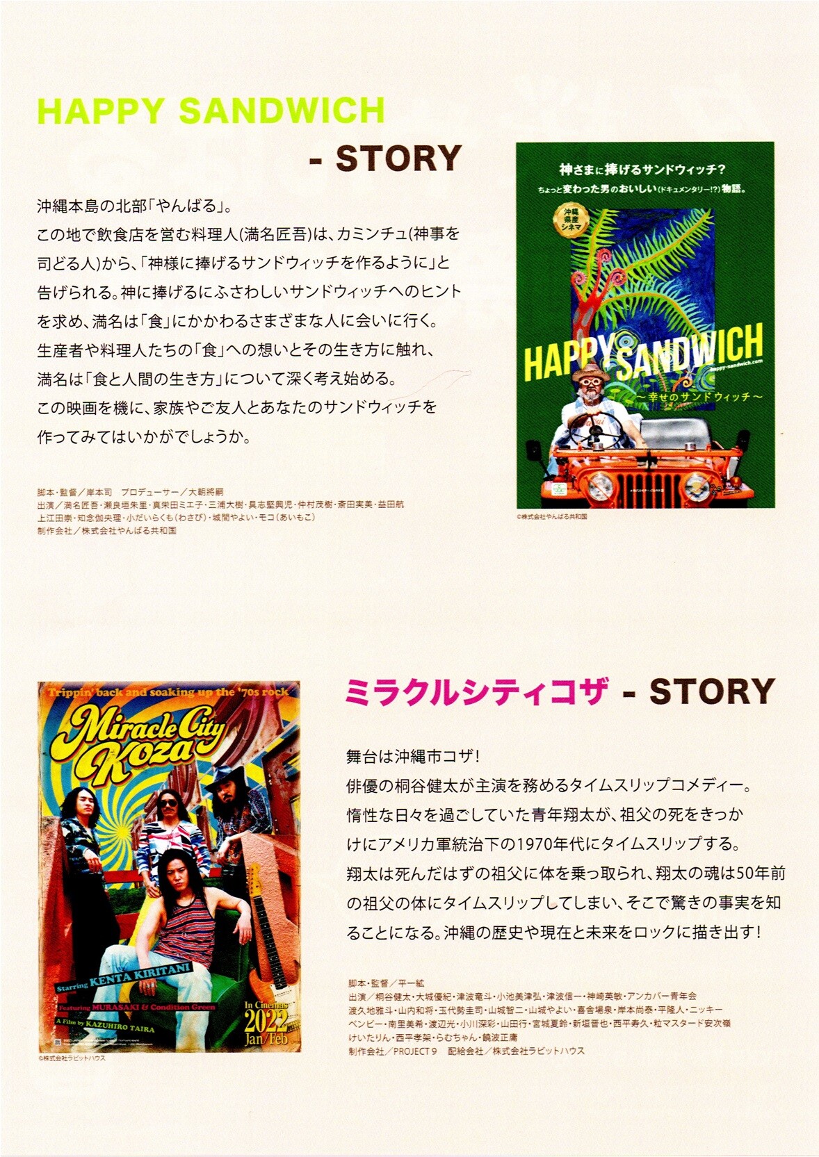 Meizakura Yanbaru 电影节 “HAPPY SANDWICH” 和 “奇迹之城 Koza”