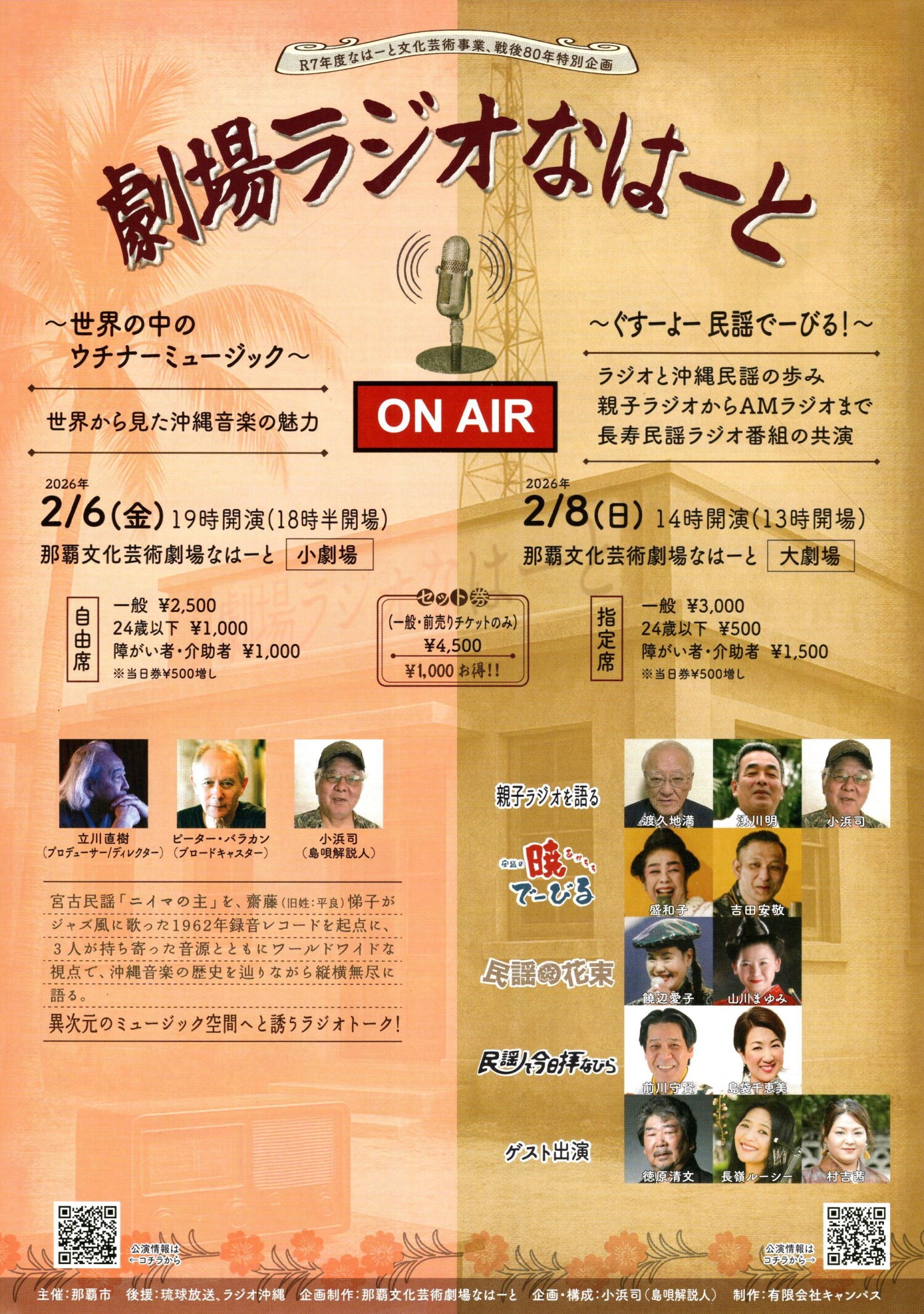 该活动以 “广播” 为关键字,深入探讨冲绳音乐世界。第一天,立川直树、彼得·巴拉坎和岛田评论员小滨司将以 “Uchina Music in the World” 为主题进行演讲。第二天是 “Gusuyo!BIRU 里有民歌!”诸如 “今天的民歌祈祷” 之类的民歌长寿节目的表演者将在标题下在一个地方见面。