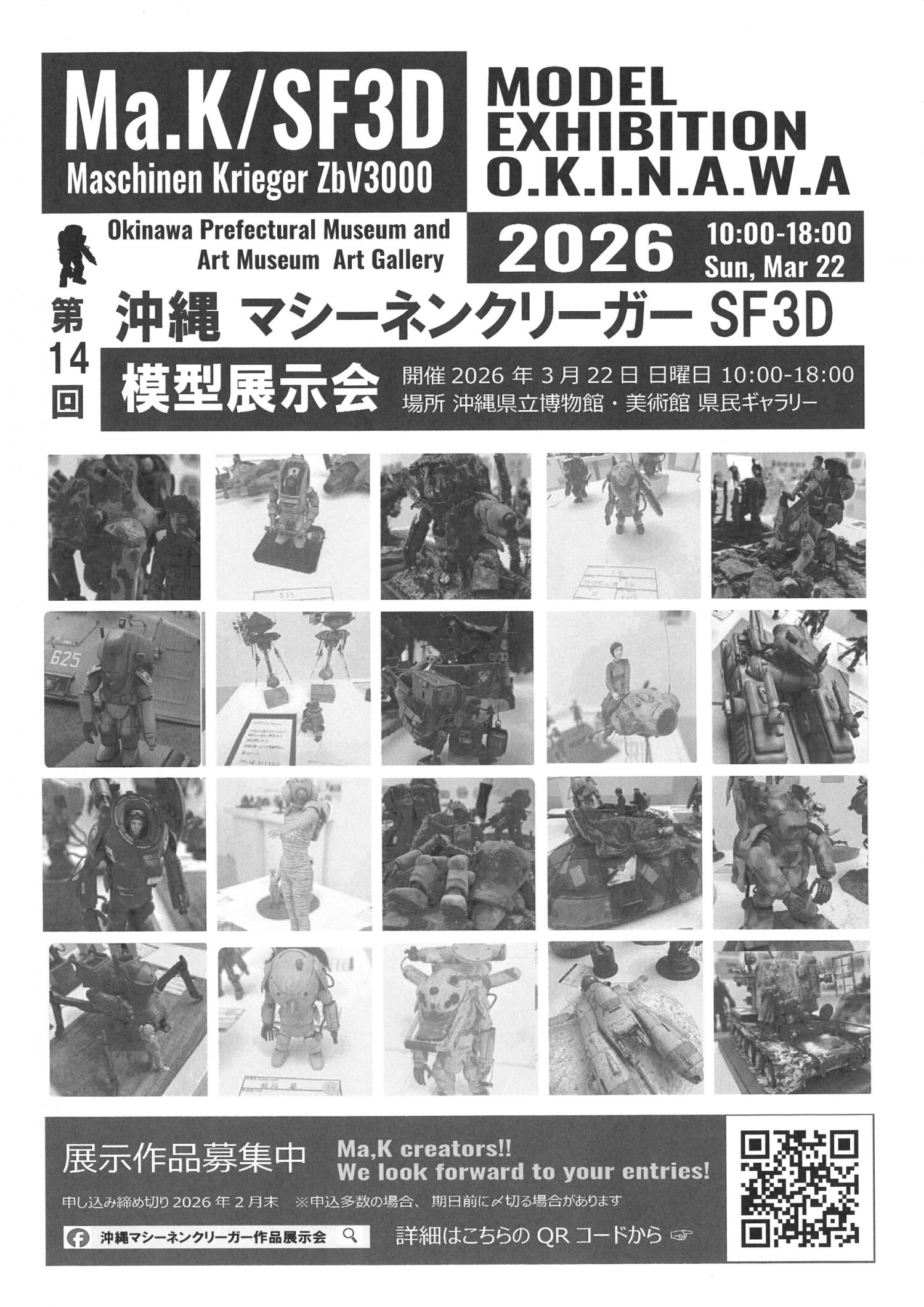 将展出以冲绳县的机器建模者为中心的原创SF3D模型和Ma.K World。“Ma.K(Maschinen Krieger)” 是根据科幻插画家横山宏始于1982年的杂志连载项目 “SF3D” 创作的原创科幻模型类型。它以 “Maschinen Krieger ZBV3000(俗称Ma.K)” 为标题连载,即使已经过去了44年,它仍然在世界各地拥有许多粉丝。背景设定在29世纪的地球上,地球已经从核战争的破坏中恢复过来,粉丝们正在根据争夺霸权的故事创建自己的场景,从而扩大原创科幻模型的世界。