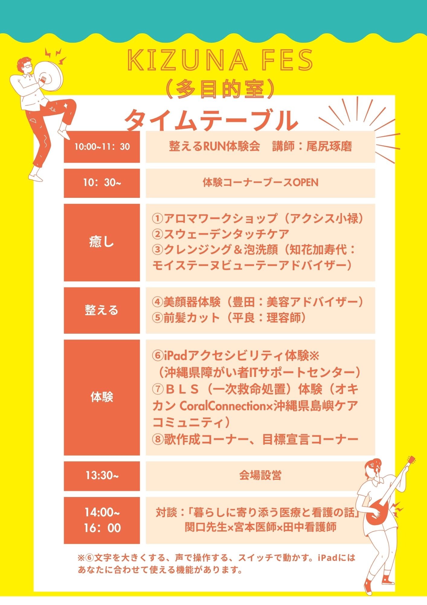跑步体验、音乐、健康体验。这是一项健康交流活动,通过对话 “贴近日常生活的医疗和护理故事”,“创建一个人们彼此认可、微笑流传的社区”,代代人都可以参与。计划将其作为一项举措,为促进区域综合护理、普及预防保健和改善心理健康做出贡献。