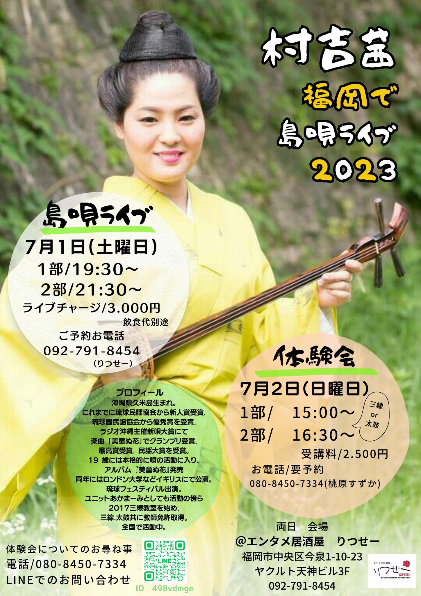 7/1(土)島唄ライブ 7/2(日)三線or太鼓体験会