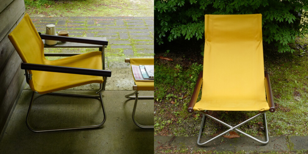 約一畳のスペースで、快適な座り心地を持ち運べる株式会社 藤栄の「ニーチェアエックス(Nychair X)」は、コンパクトで座り心地の良さが特徴。会期中は、こだわり抜かれたパーツの展示や、D&DEPARTMENTオリジナルモデル「VINTAGE YELLOW」の受注販売も実施。普段店頭に並んでいない、美の要素を色糸の織模様で表した「Shikiri」シリーズの展示や、14日間お試しできるレンタルサービスも行う。