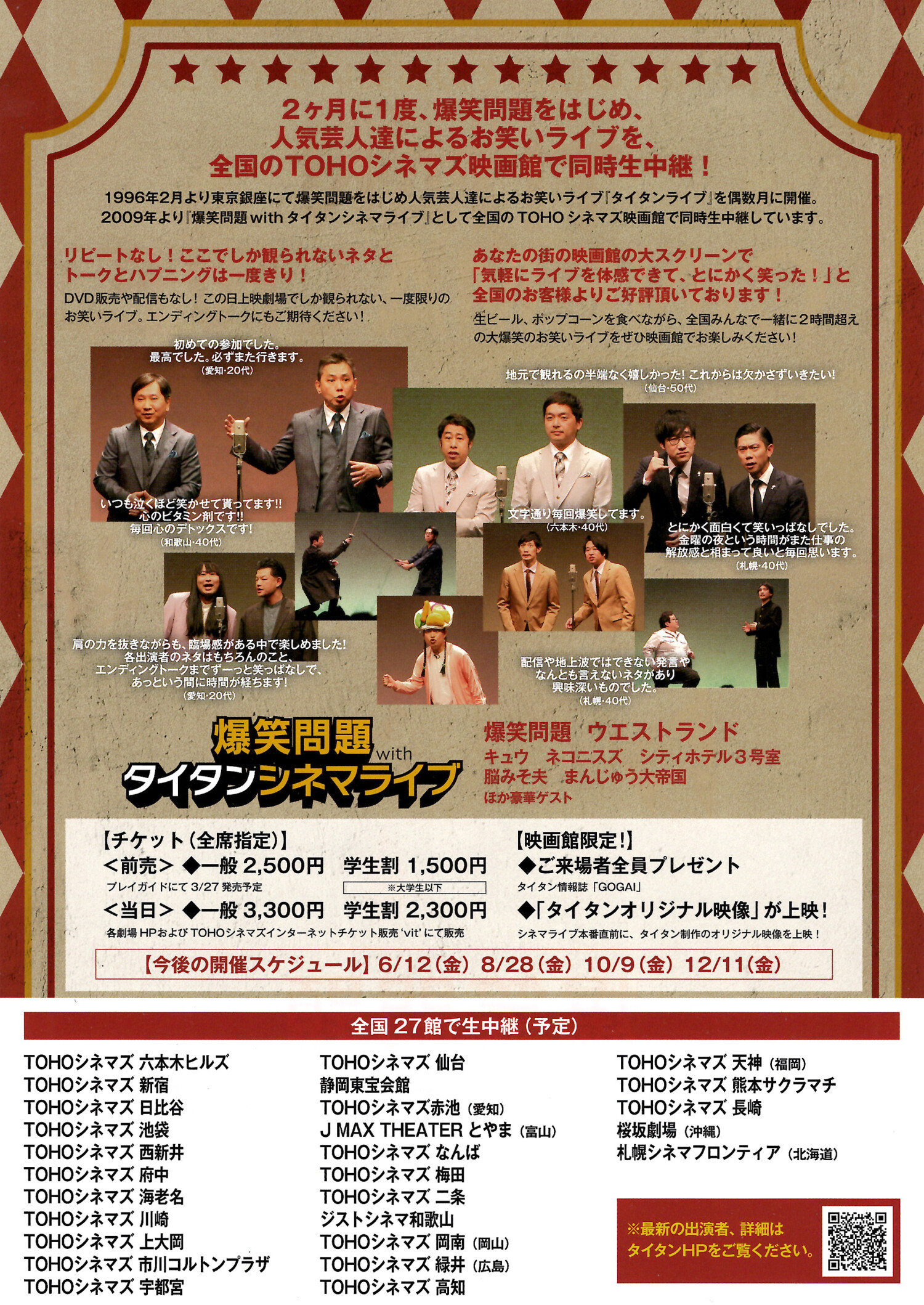 The comedy “Titan Live” is performed once every 2 months in Ginza, Tokyo. This comedy concert, in which popular entertainers perform, will be broadcast live simultaneously at movie theaters all over the country, starting with LOL ISSUE.