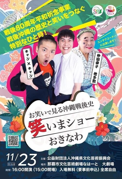 在回顧沖繩戰後的歷史時,您可以觀看令人想起那時代的沖繩喜劇。主持人是來自東京都縣的喜劇演員 Can×Can,以及擁有生活傳奇和喜劇女王等著名的中田幸子本人也出現在雲塔角(僅限對話),其他,許多沖繩喜劇演員都表演了。