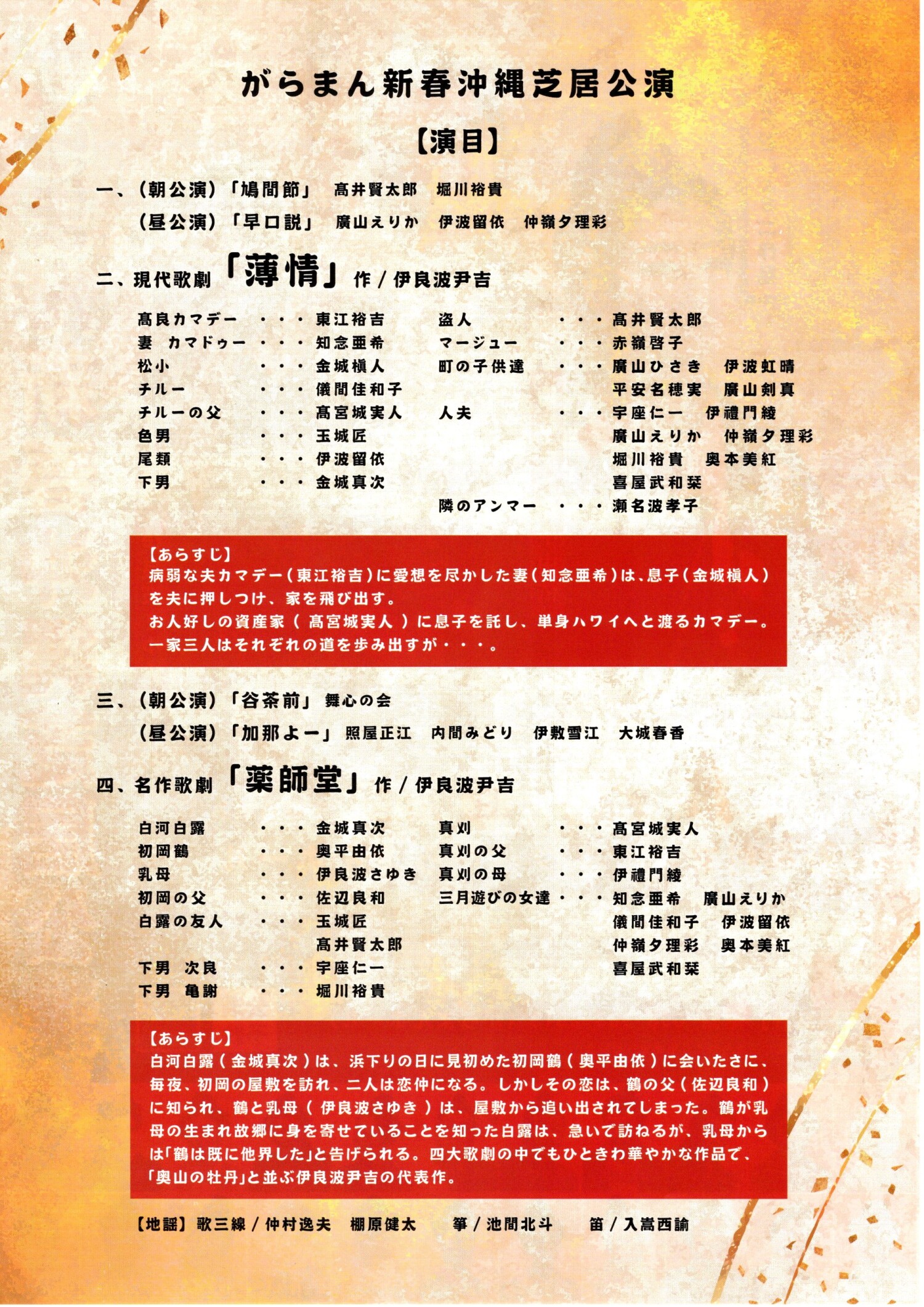 加拉曼新年沖繩芝白表演傑作歌劇「藥師堂」當代歌劇「服從」