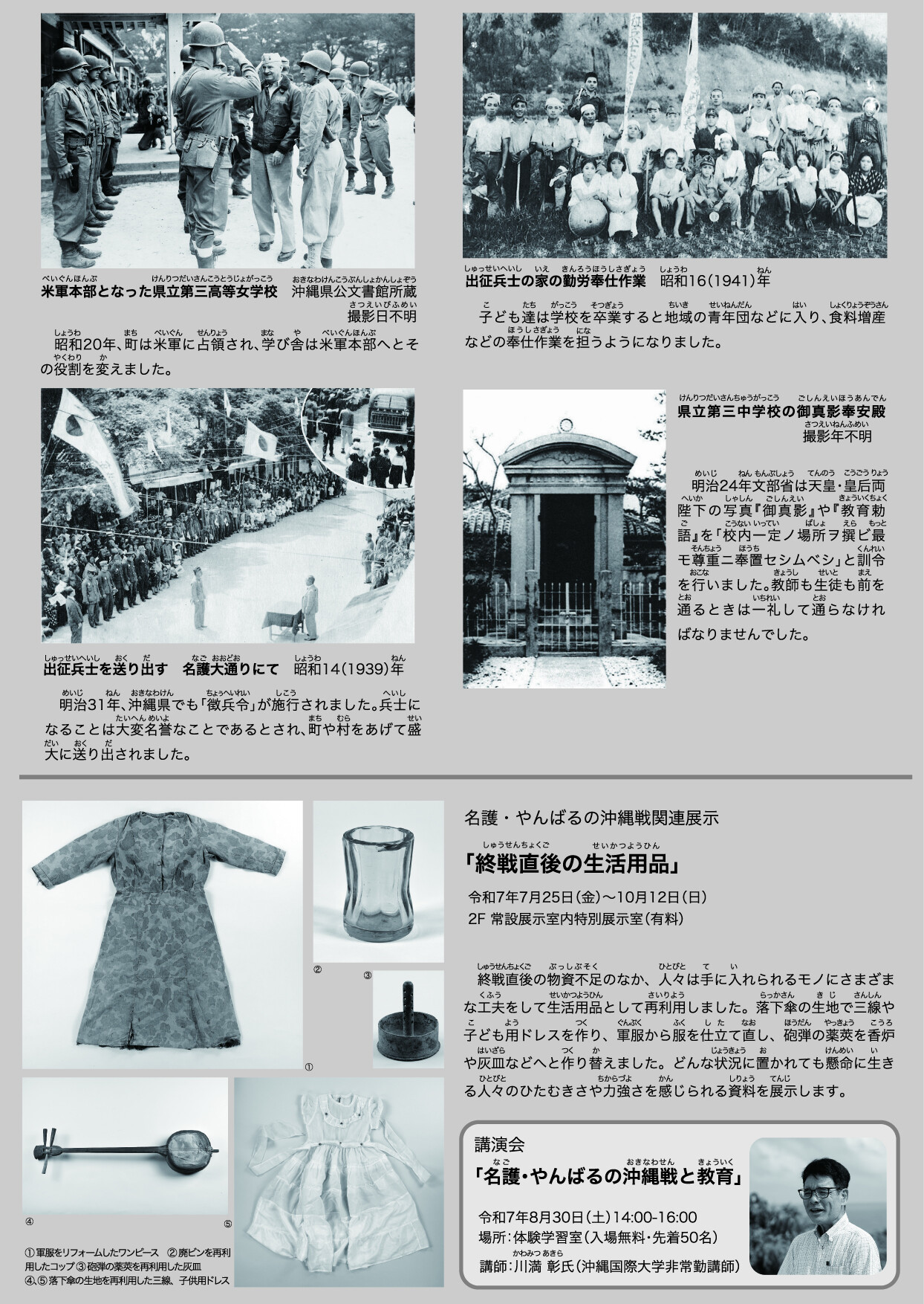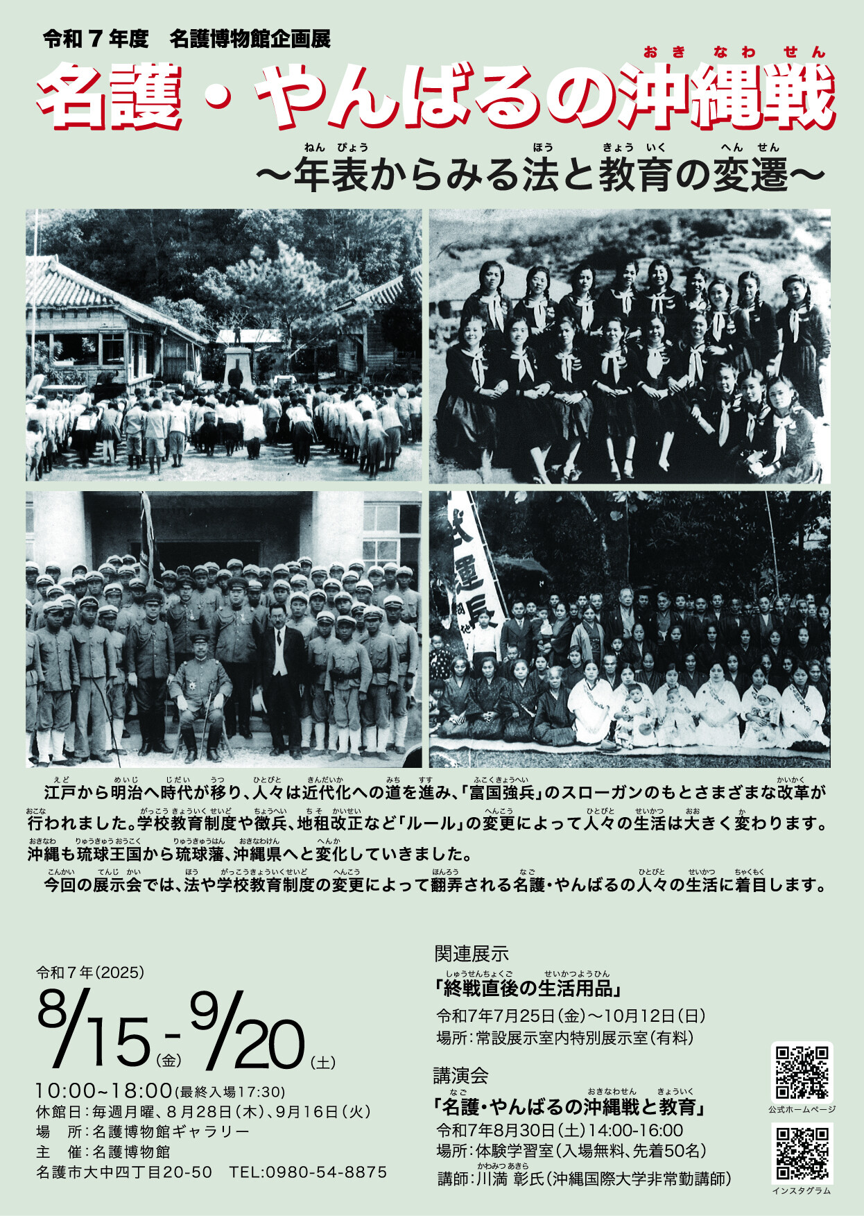 特展「名古延原沖繩之戰 - 從時間觀看法律與教育的變化」