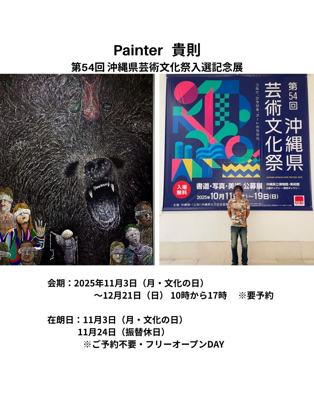 將舉行作品展覽,紀念 2025 年 2 月開始展出其個展中以獨特風格繪製的作品的「畫家高森」被選為第 54 屆沖繩縣藝術文化節。